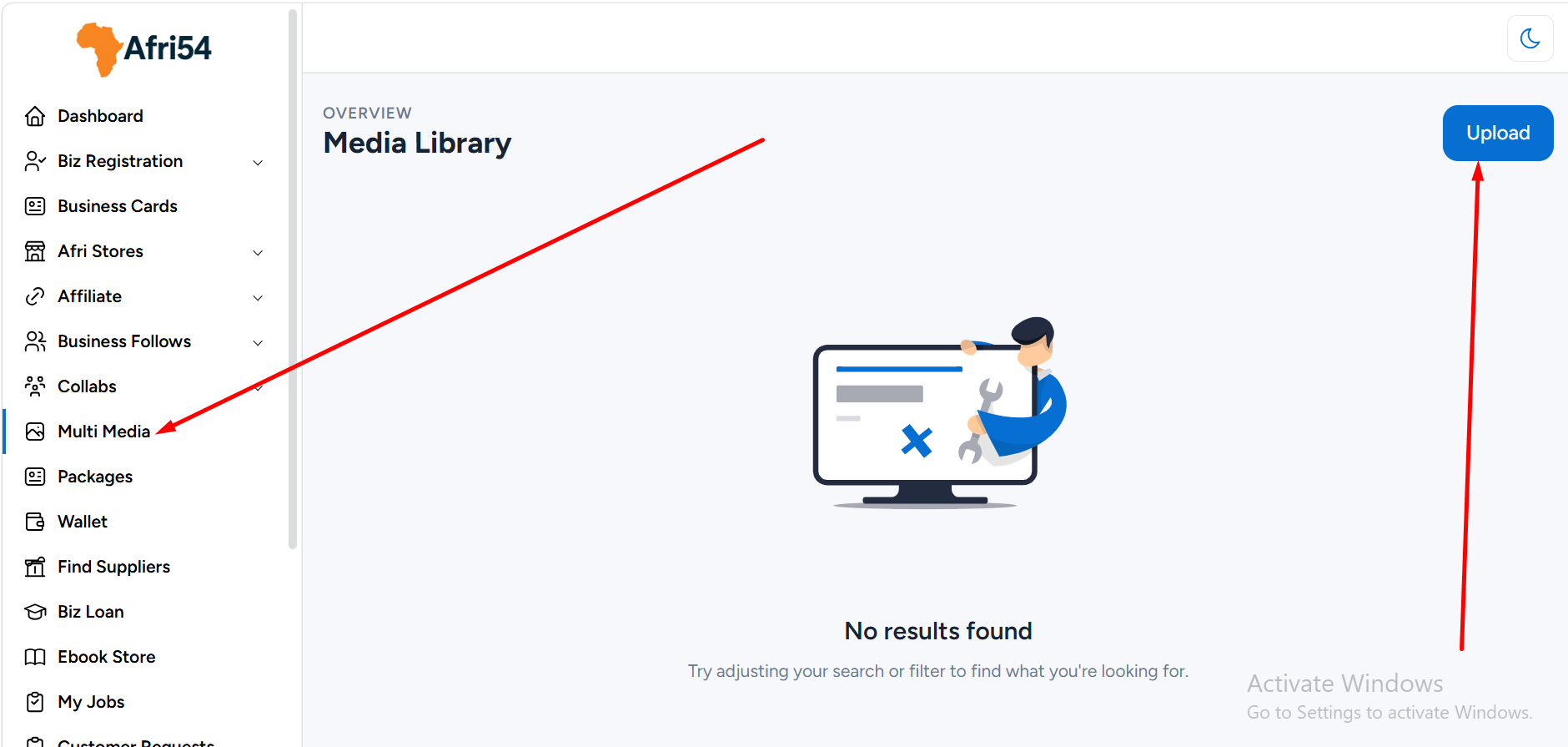 Even if you do not upload images directly through this section, any images used while creating or designing your Digital Business Card or Afri Store will automatically be saved and stored in the Media library for future use.